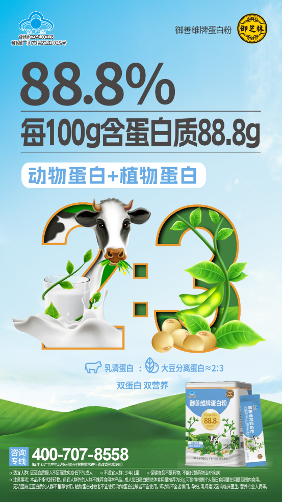 动植物双蛋白2:3科学配比,每100g含蛋白质88.8g,有助于增强免疫力。